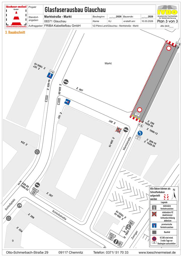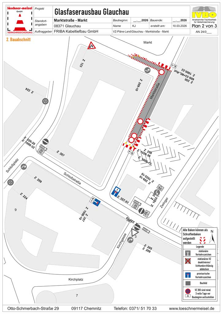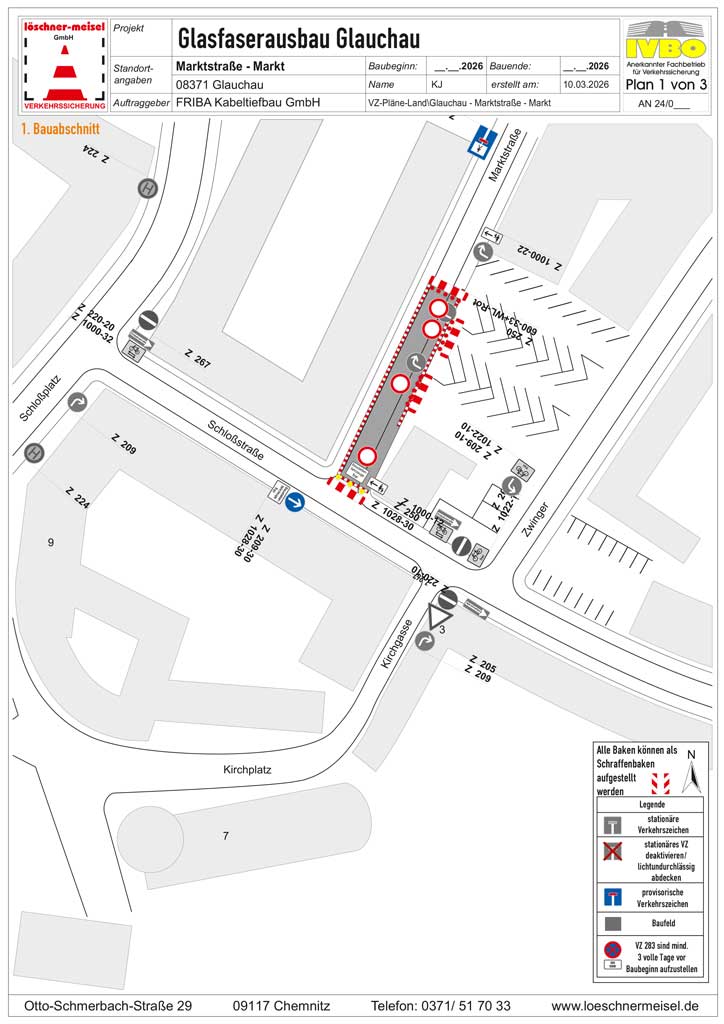 Glauchau Regionale News 21. März 2026 Glasfaserausbau in Glauchau Im Zeitraum 23.03.- 08.05.26 kommt es im Bereich der Marktstraße/Markt wegen Glasfaserausbau zu einer Baustelle, welche in drei Abschnitte gegliedert ist – siehe Anhang. Post Views: 185
